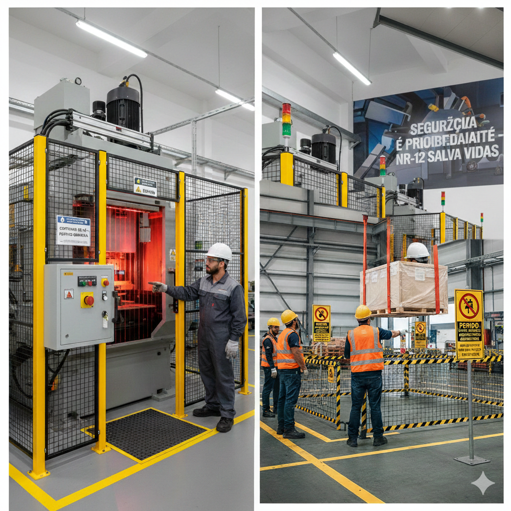Velocidade Controlada: O ambiente fabril não é pista de corrida; a inércia em uma empilhadeira carregada é difícil de vencer em uma frenagem brusca.